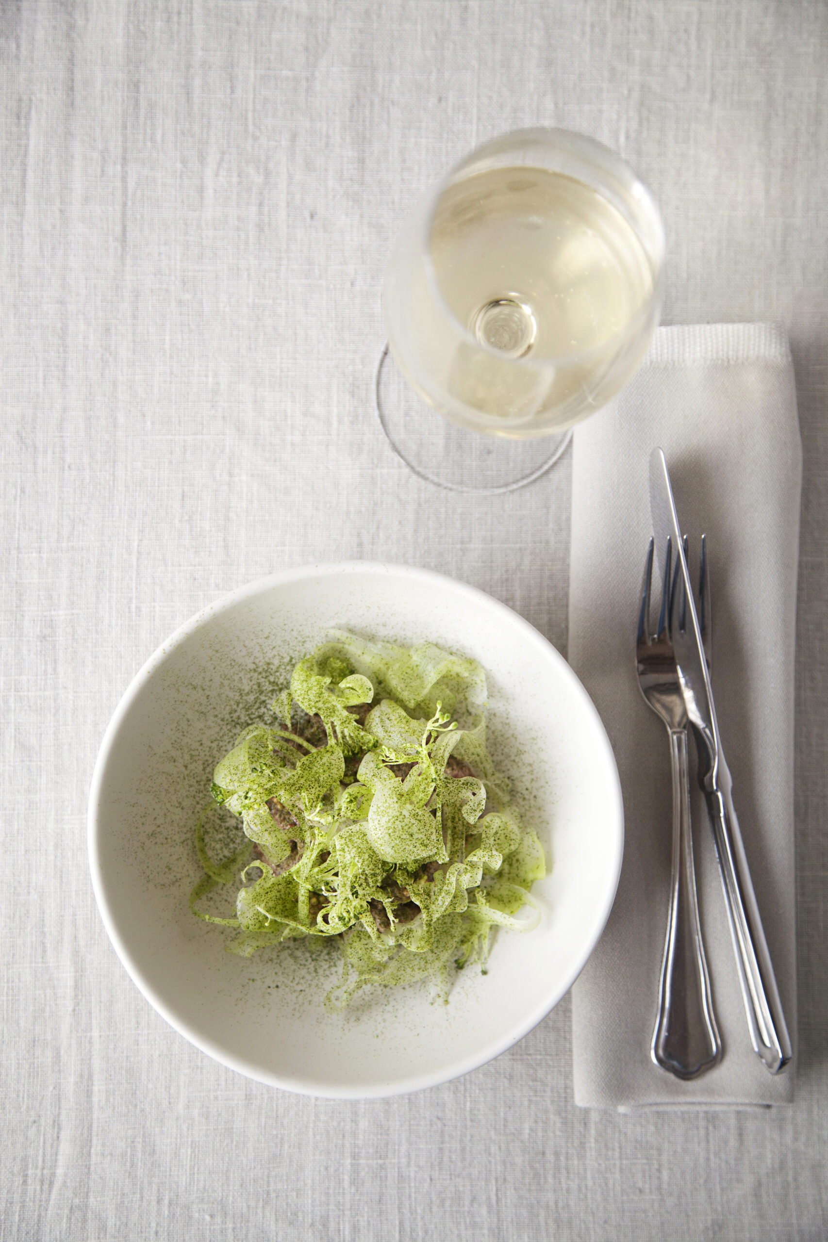Luftig hvid skum på tonganød & smørristet pumpernikkel.