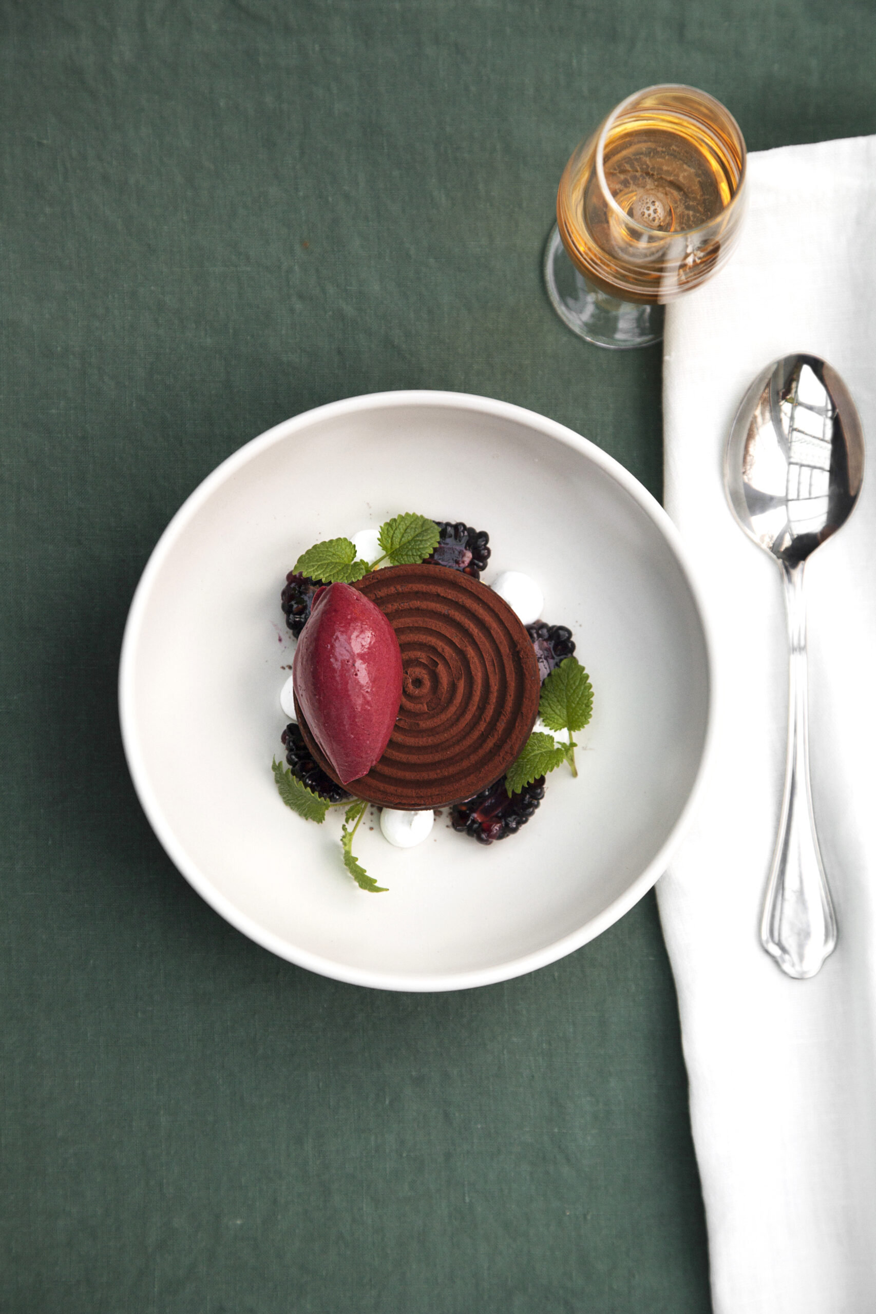 Vælg mellem: Frilandskylling fra Dyssegaarden / Dansk Duroc gris / Grillet hvid radise (V) eller Krondyr (+95,-)