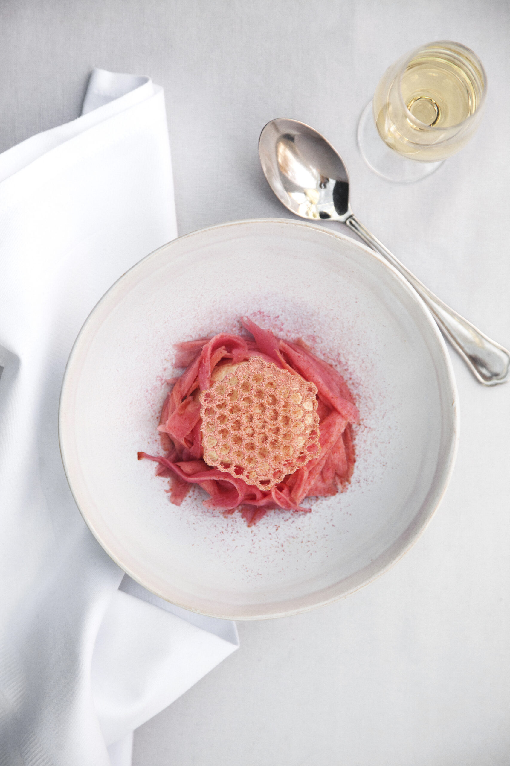 Luftig hvid skum på tonganød & smørristet pumpernikkel.